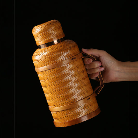 Bambus-Isolierkanne im Retro-Stil mit Temperaturanzeige 0,9L/1,5L