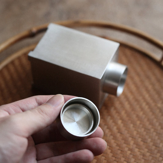 Handgefertigtes Zinn-Teeboot Quadratisch – Doppellagig für Gongfu-Tee 14,5x14,5 cm