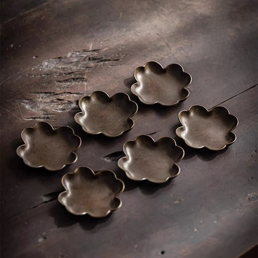 Handgefertigte Vintage Kupfer-Untertasse – Kleeblatt-Form, 7,5 cm
