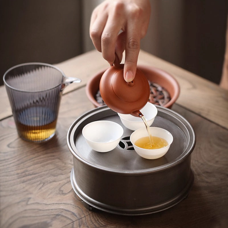 Erlebe die traditionelle Chaozhou Gongfu-Teezeremonie mit unserem handgefertigten Teeboot aus Zinn im Antikstil.