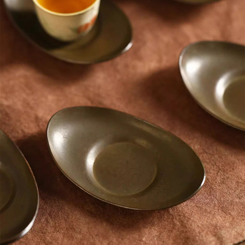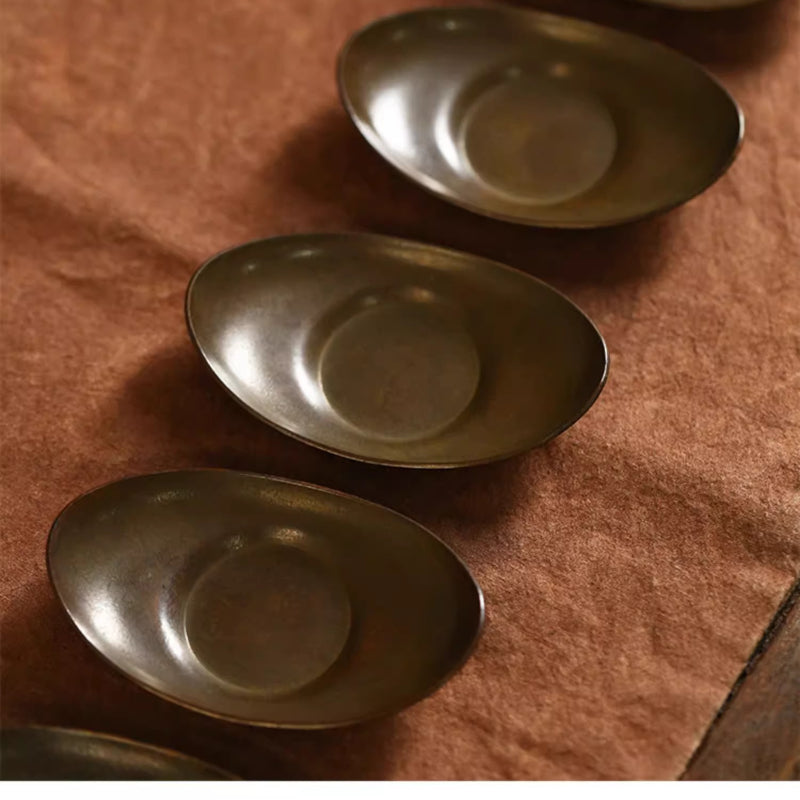 Vintage Kupfer-Untersetzer – Yuanbao-Form, Retro-Teeuntersetzer für Gongfu-Tee