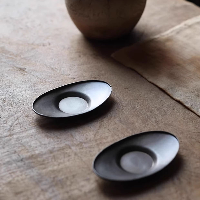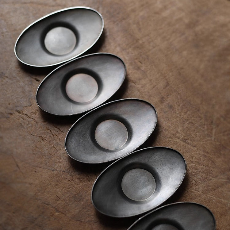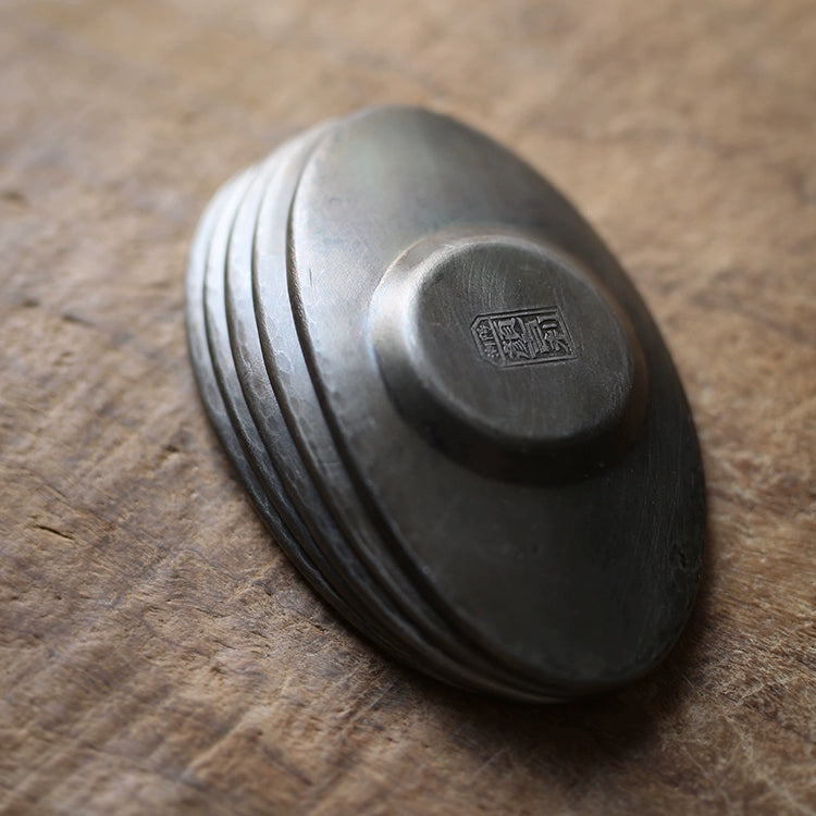 Handgefertigter Zinn-Untersetzer – Yuanbao-Form, naturbelassen für Gongfu-Tee