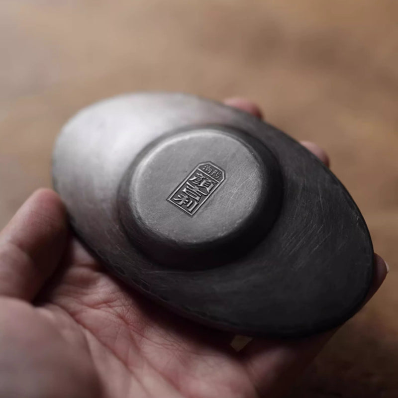 Handgefertigter Zinn-Untersetzer in Yuanbao-Form – naturbelassen und ideal für Gongfu-Tee sowie traditionelle Teezeremonien. Dieses edle Teezubehör schützt deinen Tisch und verleiht jeder Teestunde einen Hauch von Eleganz und chinesischer Tradition. Perfekt für Teeliebhaber, Sammler und alle, die stilvolles, handgefertigtes Teegeschirr schätzen.