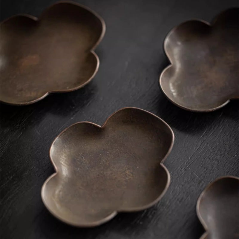 Kupfer-Untertasse Vintage – Handgefertigt, Vierblättrige Form 6,7x8,3 cm
