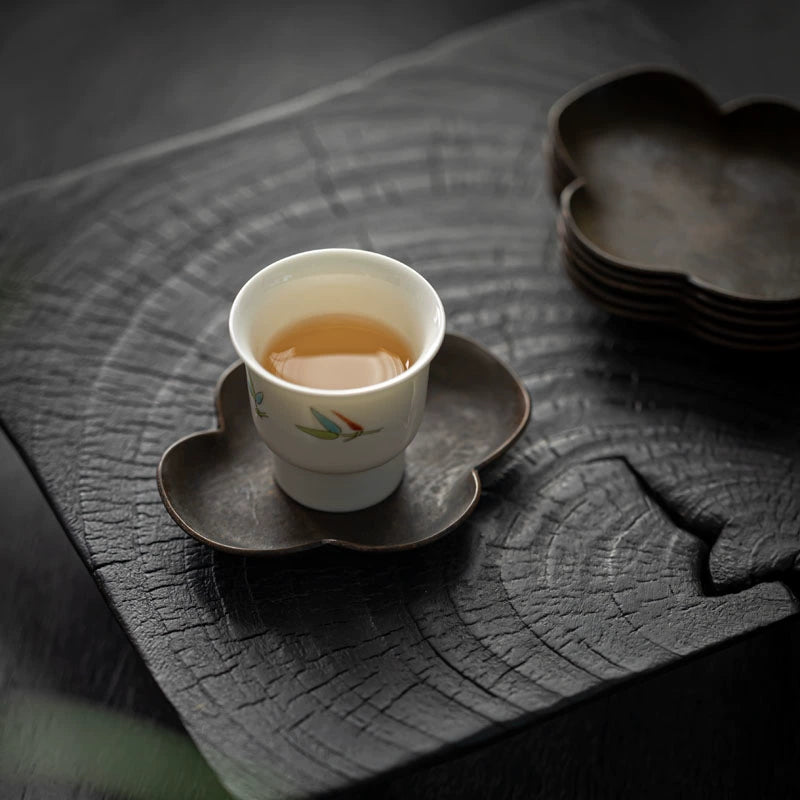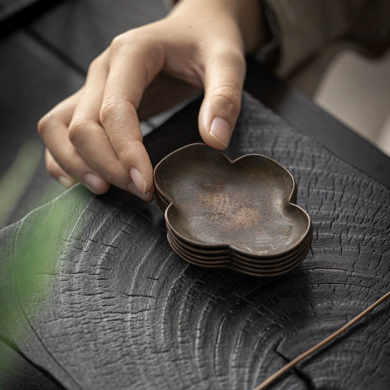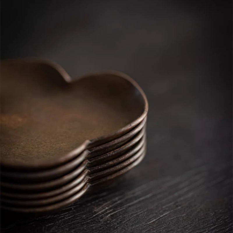 Diese massive aber fine Kupfer-Untertasse im vierblättrigen Design ist ein echtes Highlight traditioneller Handwerkskunst.